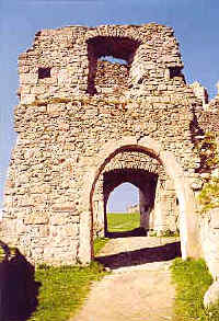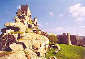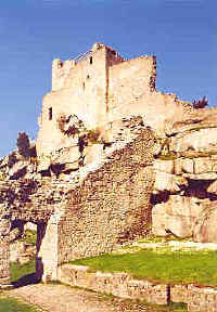 | ruina románského hradu s nedalekým koncentračním táborem z II. války |