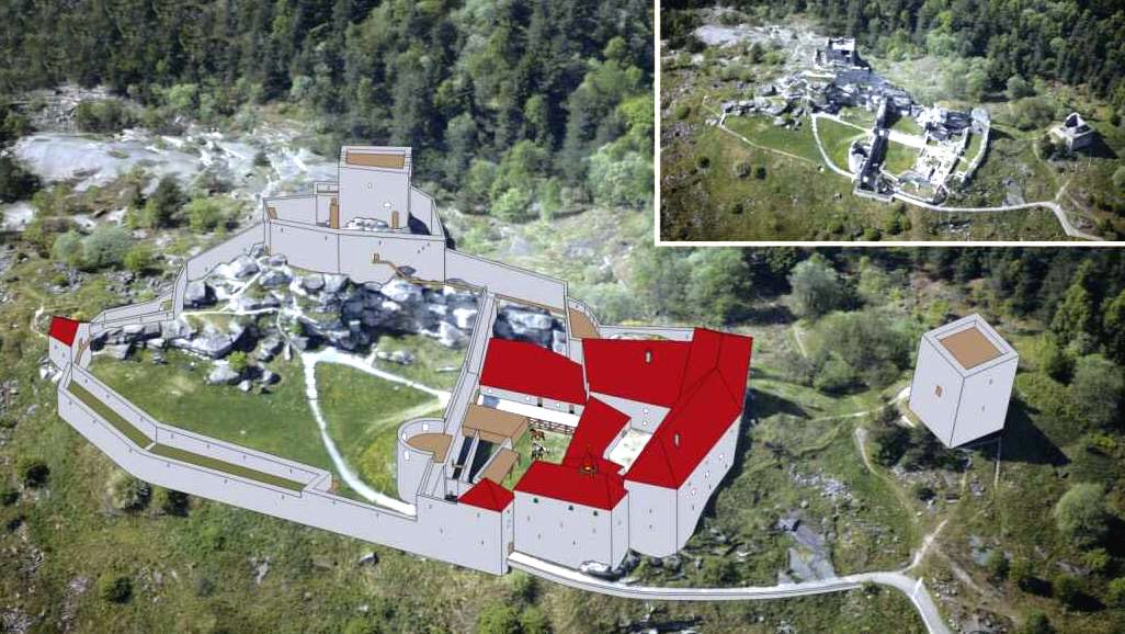 | Zachované zbytky paláce jsou mladší, zříceniny brány, dělové bašty a přilehlé hradby pocházejí z počátku 16. stol. Dodnes nebylo lokalizováno místo, kde stávala hradní kaple, přestože její existence je dokázána historickými záznamy. Odkryta a částečně znovu opravena byla stará studna a prostor, který ji obklopuje. |
