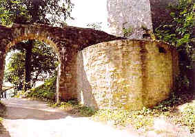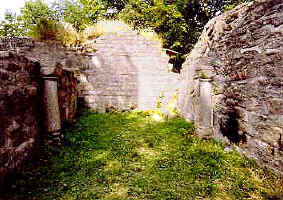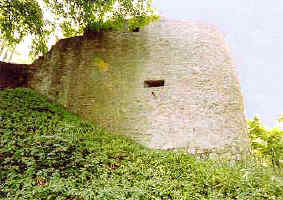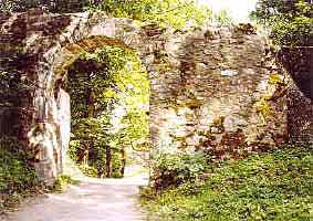 | Cesta vede dále k vnitřní bráně, která byla součástí románské obvodové zdi a vpravo byla kryta malou válcovou věží přistavěnou až v 15. st. V této věži se nachází klíčová střílna k ostřelování prostoru před vnější bránou. |