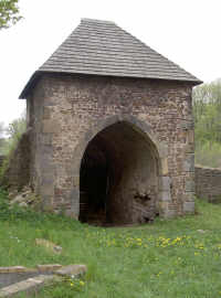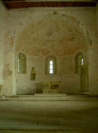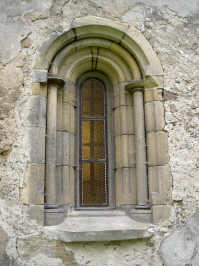 portál z 16. st. V apsidě původní půlkruhové okénko se sloupky a