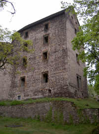 | Přestavby donjonu v 16. a následně v 17. století do značné míry setřely jeho středověký charakter - kromě zaklenutí sklepa došlo k přepatrování, místnosti osvětlila četná velká obdélná okna v obdélných kamenných rámech, ploché stropy dostaly štukovou výzdobu (zbytky dochovány v okenních nikách) a vznikl schodišťový přístavek při věži na západní straně, který propojil vnějším schodištěm jednotlivá podlaží, takže bylo možné zrušit vnitřní nekomfortní dřevěná schodiště zabírající značnou část obytné plochy. Na něm jsou zbytky sgrafitové výzdoby. |