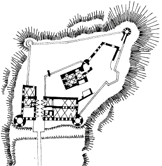 | Hrad ve II. čtvrtině 14. st. vyrostl na konci ostrohu a zřejmě navázal na zanikající starší sídlo, které bývá situováno do prostoru předzámčí severovýchodně od hradu, kde byla při průzkumu zemního bastionu nalezena zeď spojovaná vápennou maltou, nad níž se nacházely horizonty datované do 12. či 13. st. Původ zdiva ani jeho souvislosti však nejsou jasné. |