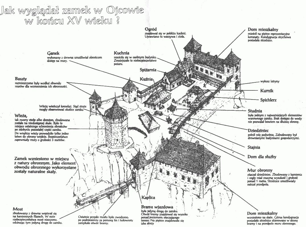 | Existenci hradu potvrzuje zápis z r. 1370, jmenující zdejšího purkrabího Zaklika. Pouze jednou (r. 1400) byl objekt dán do zástavy Vladislavu Jagelonskému. Majetek vytvořený rodem Ojcovských zůstával nejčastěji v rukou královských věřitelů a funkci starostů (purkrabích) plnili představitelé nejváženějších malopolských rodů. Nedokážeme dnes určit v jaké době se Ojcovští přičinili o rozšíření stavby. Při první prohlídce (kontrole) provedené r. 1564, bohužel nebyl vylíčen popis hradu, ale ze soupisu nepočetné služby je možné usuzovat, že zdejší starostové s ním nezacházeli, jako se svým sídlem. |