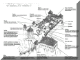 | Obytná budova se nacházela při východní kurtině. Vstup do hradu vedl od západu, v sousedství věže. Zápisy ze 17. a 18. st. dovolují rekonstruovat uspořádání hradních prostor po pracích provedených Korycińskými. Od západní strany se nacházela dodnes zachovaná budova brány s průjezdem a místností v prvním patře. Do brány vedl dřevěný most podepřený třemi páry zděných pilířů. |
