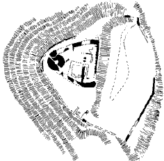 | Základem hradu byl mohutný bergfrit zavázaný do obvodové hradby, místy až 2 m tloušťky. Hradní areál měl tvar podkovy a později byl ještě obehnán ještě jednou hradbou. Tím bylo vytvořeno i malé, hospodářské přehradí. Obytné budovy byly částečně zatesány do skalního podloží. |