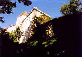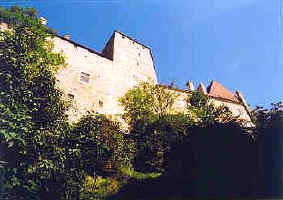 | Přiměřeně vývoji a přestavbám byla také původní plášťová zeď zvýšena. Zdi jsou vystavěny z pečlivě vyskládaných velkých bloků lomového kamene, a bergfrit z "opus spicatum". Nároží paláce a ostění jsou provedeny na vysoké úrovni kamenické práce. |