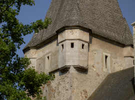 | Flankovací věž na východě byla vystavěna na přelomu 16 až 17. st a díky pozdějšímu zemětřesení byla radikálně snížena. | |