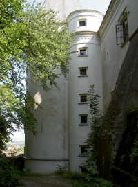 | Za pozornost dále stojí nádherně tvarovaná branská věž (19. st.), sloupové patrové arkády ze 16. st., mramorové okenní parapety nebo monumentální tří ramenné schodiště (19. st.). | |