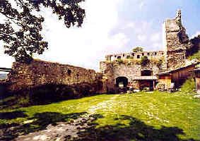 | Na nejvyšším místě šestihranné, obezděné dispozice kdysi stály obytné budovy (paláce) a bergfrit; dodnes se bohužel z těchto nejstarších staveb nic nezachovalo. |
