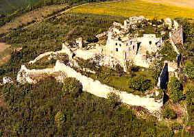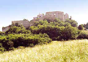 | zřícenina velkého hradu na vápencovém dominantním vrchu |